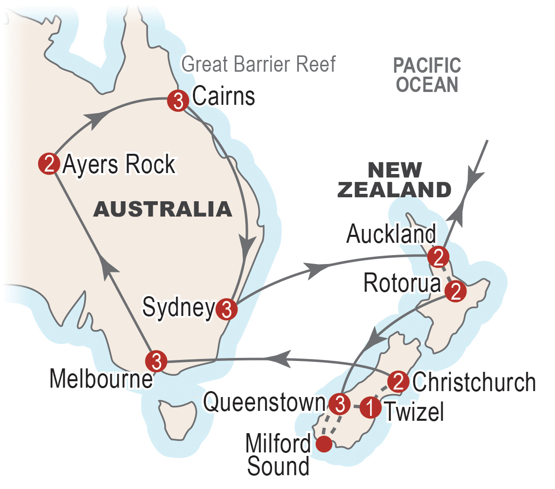 Land only members join at the hotel in Auckland and leave at the hotel in Sydney. The land only price includes flights to and from the Outback but excludes all other domestic flights in destination.