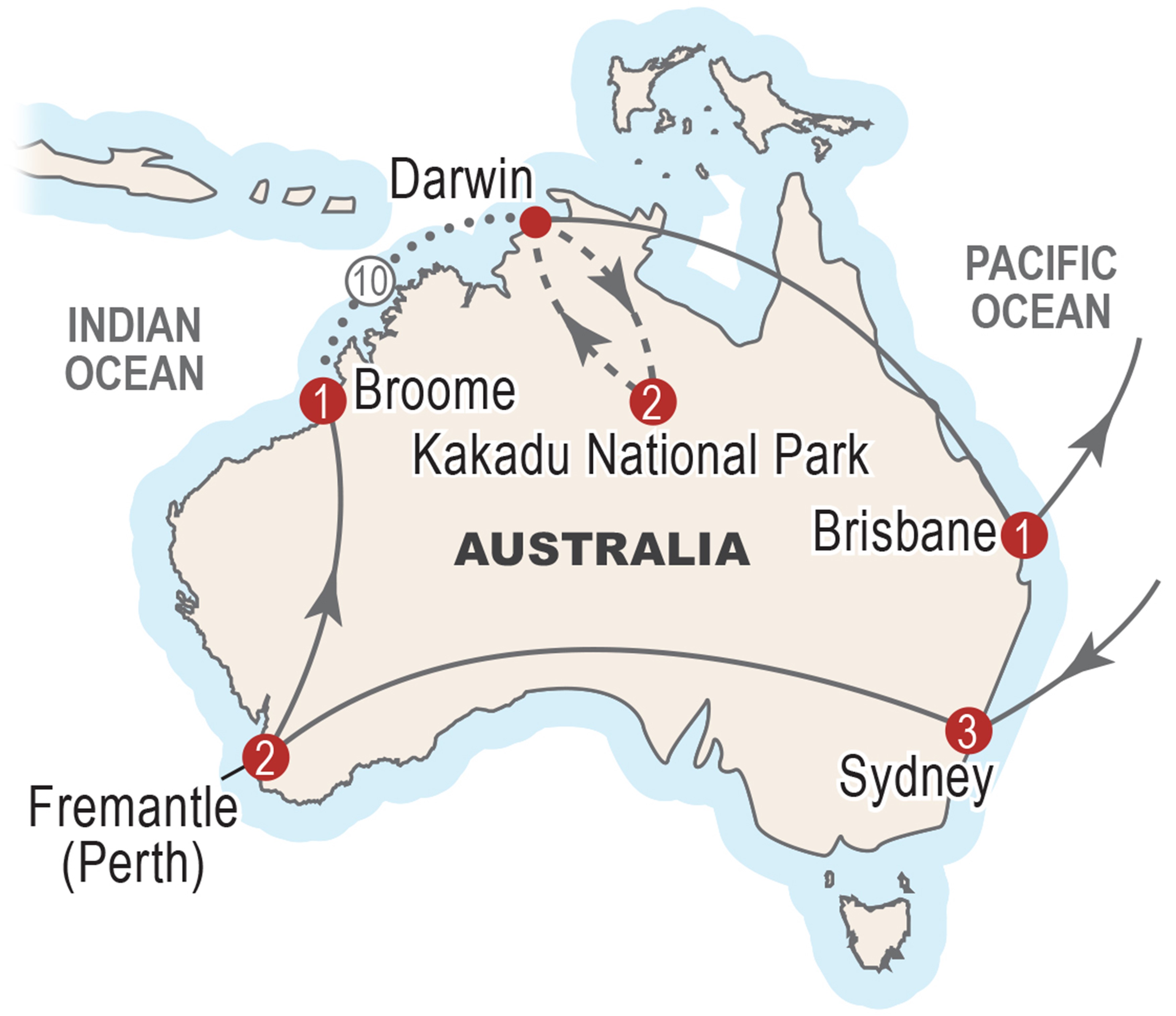 Join us for an odyssey that reveals the two distinct faces of Australia. We begin amidst the iconic harbours and heritage streets of Sydney and Perth, enjoying the vibrant culture of the continent’s coastal capitals. Yet, the true magic awaits in the wild north. From the teeming wetlands of Kakadu to the red sandstone cliffs of the Kimberley, we step into a prehistoric landscape unchanged for millennia. Aboard our intimate expedition vessel, we navigate a coastline defined by thundering waterfalls, ancient Aboriginal art, and dramatic tides. This journey offers a rare chance to experience nature at its most powerful in a place where land continues to set the pace of daily life.